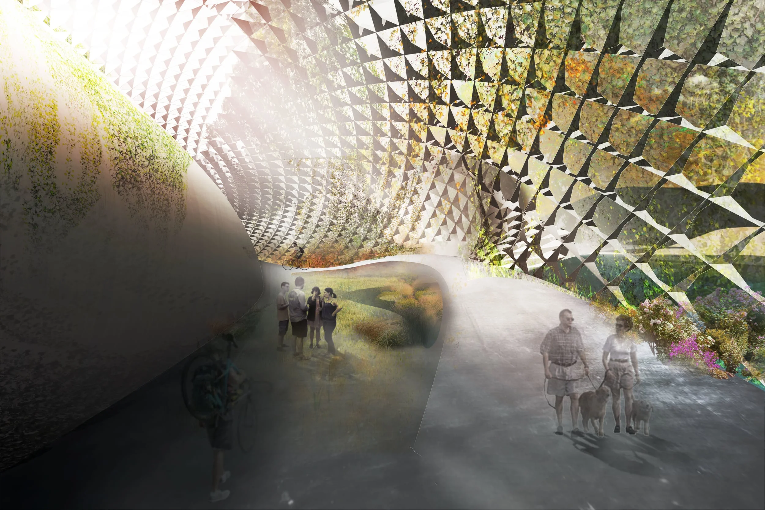 The resulting experience of this system of design for the strip district river site is a unique park for the city that captures the complex, vibrant, messy quality of the strip in a technologically advanced, environmentally adept, rich spatial experience of diversity, integration and connectivity. The system has the ability to adapt and transform over time, on the site, across the strip district, and over a greater city context.