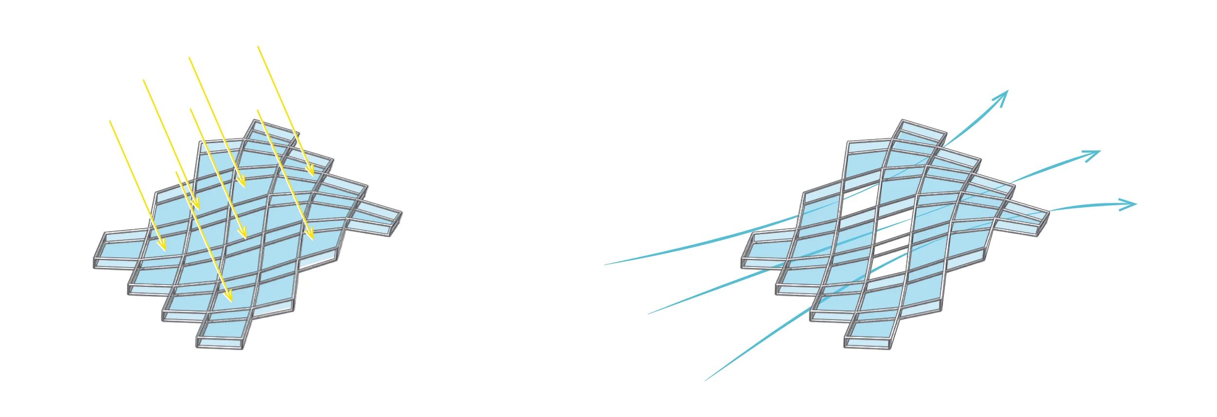 The site condition feeds off the characteristics of the strip in its formal development. The global site organization is derived by existing and projected circulation patterns evolving spatially around social program components and varying geometrically by density. The program pieces are then broken down in a fractal pattern to imply space at various scales and create modules with a similar gradient language of geometric intensity as the overall site form. These modules are further developed at a local scale by an environmental analysis and feedback simulation. The tectonics of this form is a screen that can be controlled through design and use to adapt and transform to specific microclimates across the site. This screen becomes its own Eco machine that is regulated by structure, space, environment, use and logic.